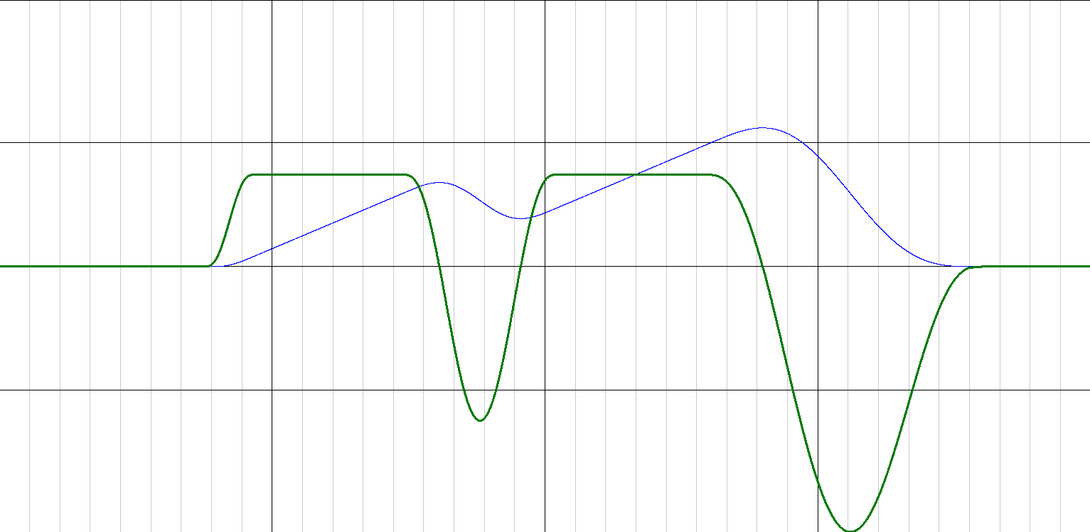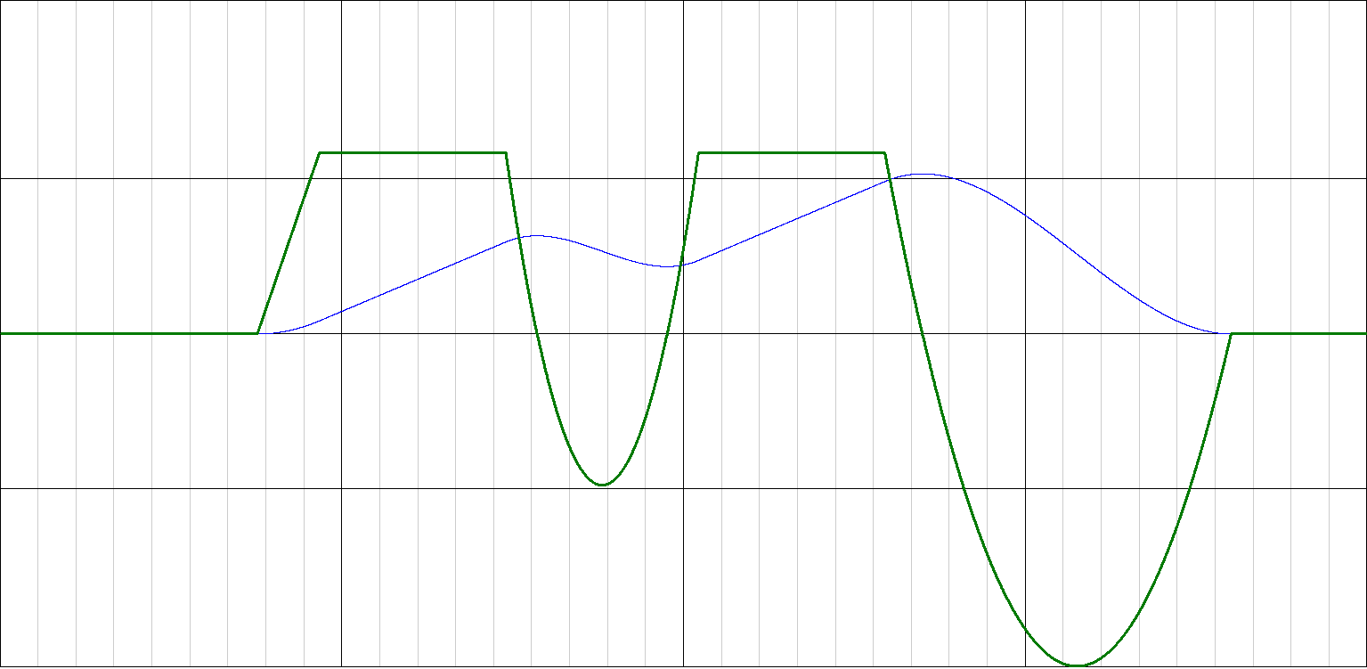 通過以上公式可生成位置&速度連續的凸輪曲線(加速度存在突變,加加速度存在沖擊)