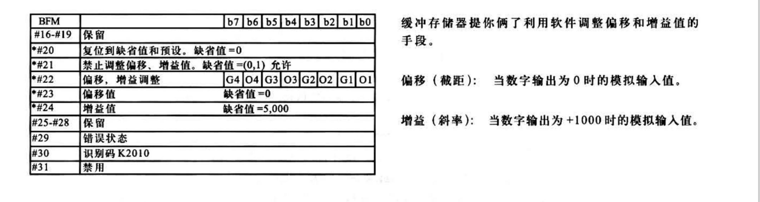 以前用過(guò)FX2N-4AD手冊(cè)上有講“偏移:當(dāng)數(shù)字輸出為0時(shí)的模擬輸入值,增益:當(dāng)數(shù)字輸出為+1000時(shí)的模擬輸入值”這個(gè)8AD模塊手冊(cè)沒(méi)寫(xiě)