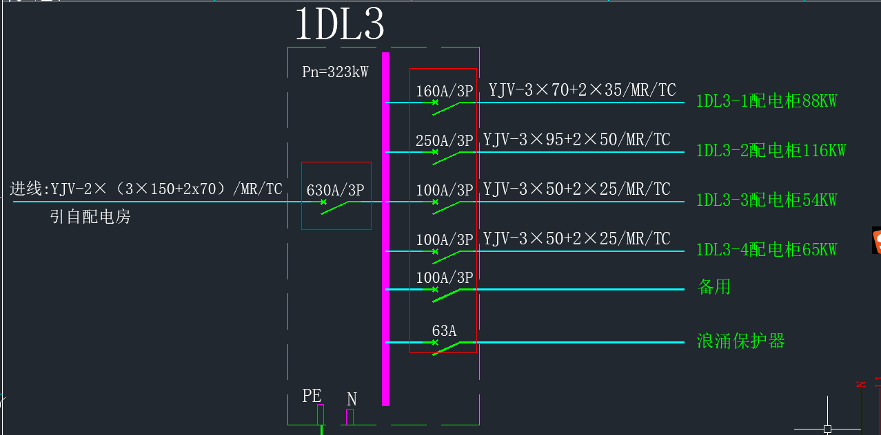 最近在畫電路圖了,遇到個(gè)問題就是不知道那個(gè)互感器的電流比怎么算,具體問題就是如何根據(jù)開關(guān)上標(biāo)注的額定電流來(lái)計(jì)算互感器的電流比。在網(wǎng)上看到個(gè)回答是說(shuō)用1A或者5a的二次電流去除以一次電流,然后一般選擇空開有個(gè)1.2-1.5的系數(shù),所以可以知道我這個(gè)圖上630A的空開的電流最大的630/1.5=420A左右,取個(gè)整數(shù)400吧,然后就能得出我這個(gè)圖上的要裝的互感器的電流比是400/5,不知道我這樣推理對(duì)不對(duì),希望大佬解答一下,先提前謝謝各位大佬啦!