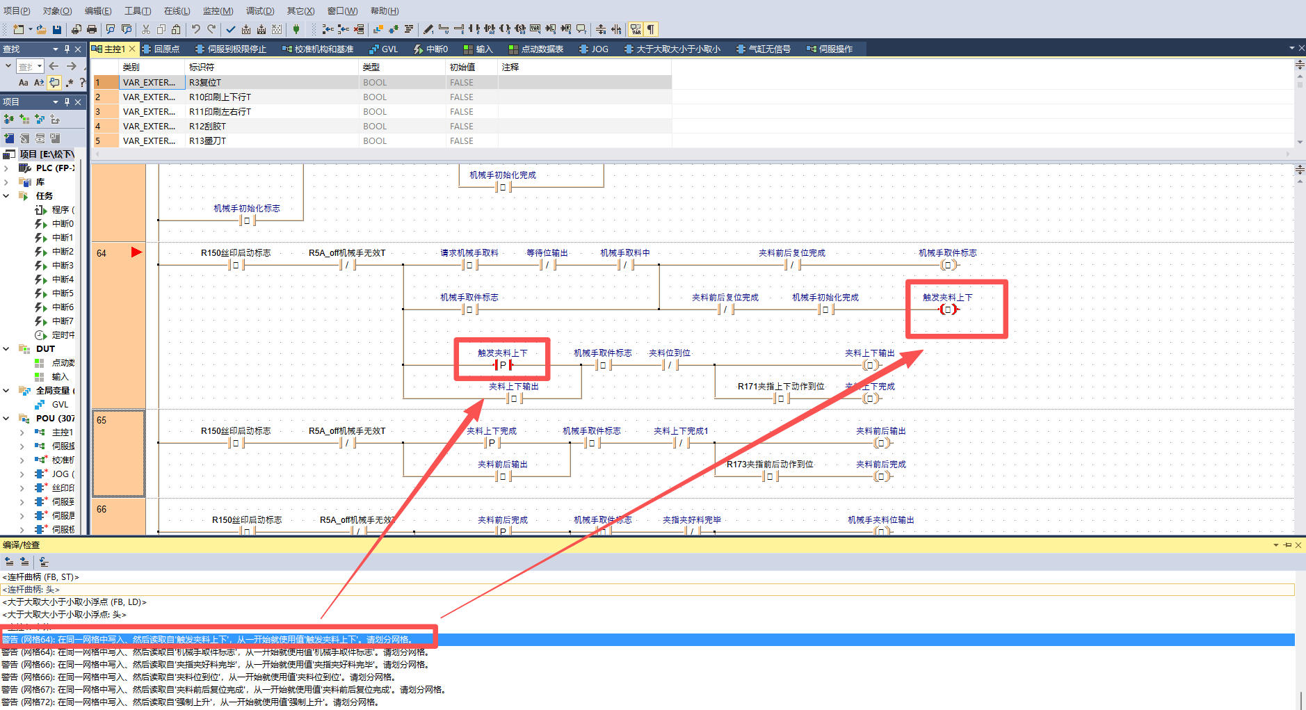 公司用了很久的絲印機有問題了,用的是松下FP-XH的PLC,原來的廠商說是PLC壞了,買了新的換上去,從別的正常的絲印機用FPWIN Pro7 版本7.7.4.0讀出來的程序,編譯的時候竟然報錯,如圖所示,這也能報錯,真是太狗了源程序附上,用FPWIN GR7讀出來又會有很多錯誤的地方 ,對松下的PLC也不熟悉,廠商也找不到原來搞程序的人了,公司也倒閉了,這下難搞了,請各位大神們觀摩下