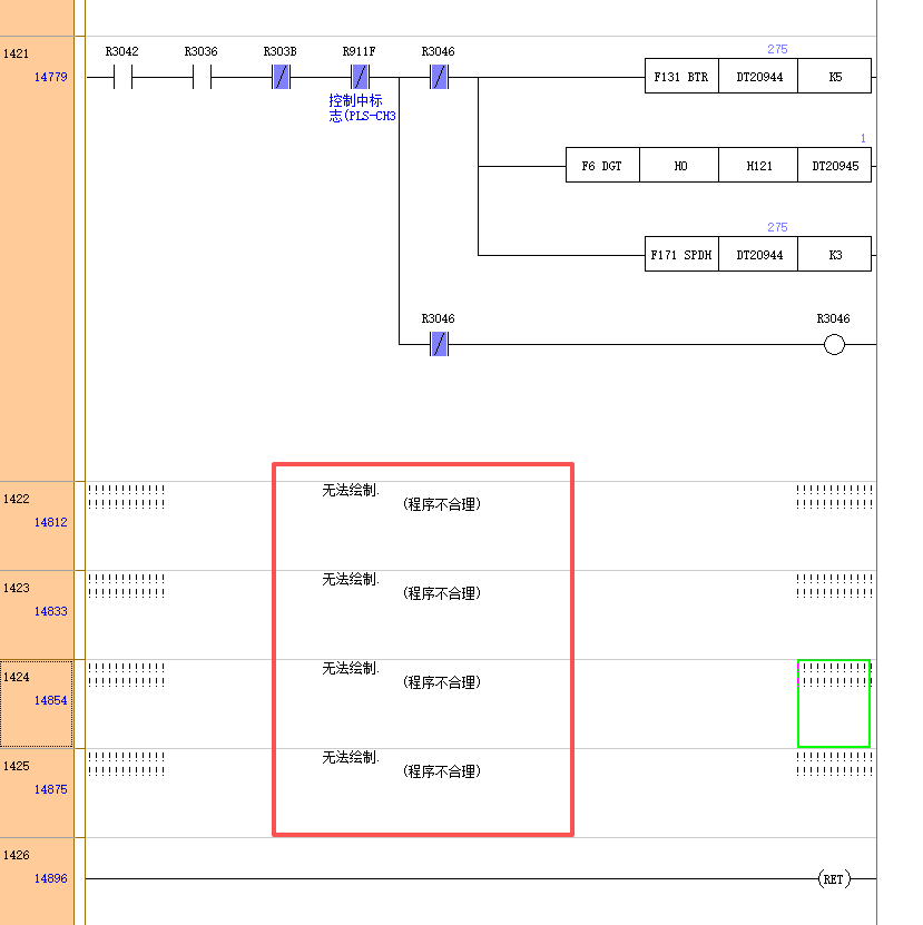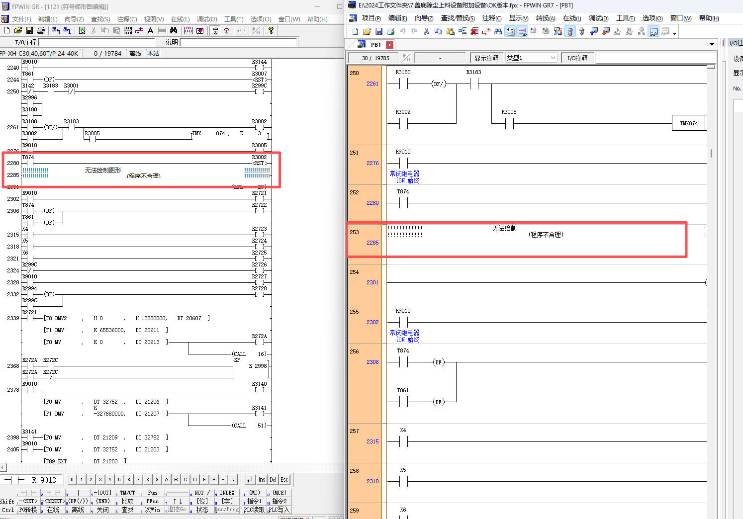 下面的那個圖就是用松下FPWIN GR7 2.34.00版本下載回來的,有的地方直接顯示無法繪制(程序不合理)