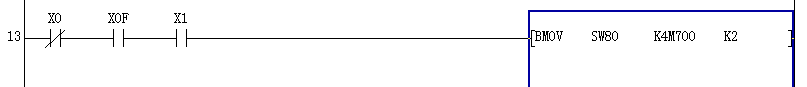 如果是BMOV  SW80 K4M700 K2  意思就是傳送特殊連接繼電器sw80 開始 到 k4m700 =m700-m715 傳送位數k2=2個16位  結果就是從sw80開始到sw112的開和關也就是0.1數據映射到m700開始到m732上面。本人表達能力不行請多包涵!