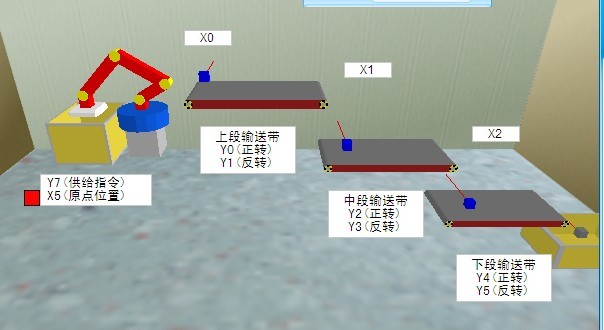 從輸出Y知道,傳送帶只朝一個(gè)方向運(yùn)轉(zhuǎn);從輸入看,X20是起動(dòng);而且,X3的接通,也可以起動(dòng)。