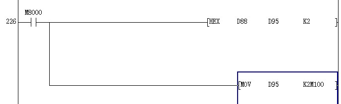 我看這圖在圖中和其他沒有什么聯(lián)系。不知有何意義呀?他也不是觸摸屏的位元件。這段程序能工作嗎?謝謝!不知是不是和這個傳送指令mov  d95  k2m100有關系呀!是什么意思解釋一下好嗎?