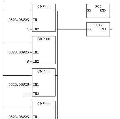 當DB23.DBW26=7或8或11或…時調用功能FC5和FC12 。