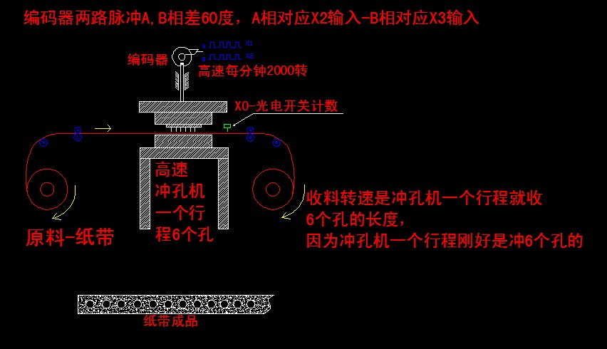控制要求好簡單,就是沖孔機每沖一個行程就6個孔輸出,如果XO光電開關檢測不是6個孔就報警