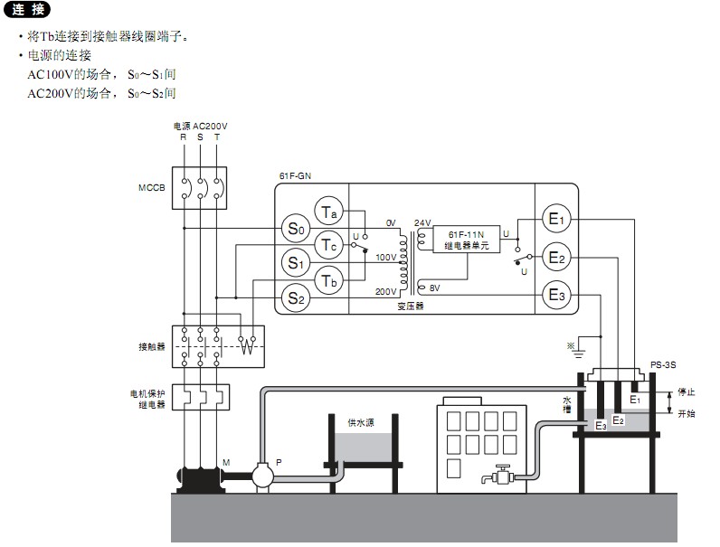 使用液位繼電器配合交流接觸器,有220V與380V兩種