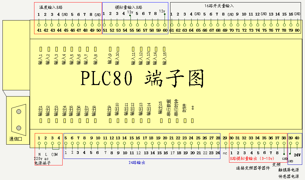 可以把溫度端子或者模擬量輸入端子借過來,當做開關量來使用