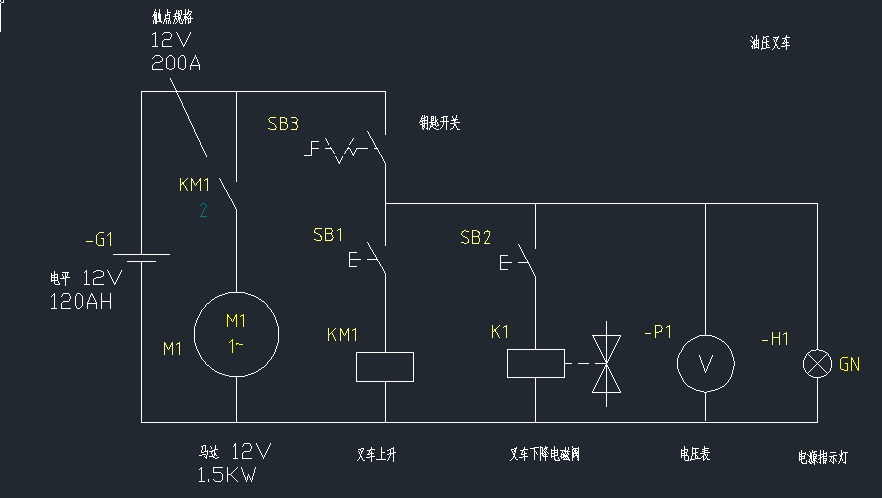 現(xiàn)在手頭有個(gè)電叉車,叉車電源是個(gè) “電平”,它的規(guī)格是12V,120A, 我想用個(gè)繼電器代替它的按鈕。。
