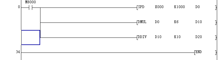 要求單位為m/s,接近開關輸入信號,取樣輪周長為1.2m,兩個取樣點,一個點為0.6m