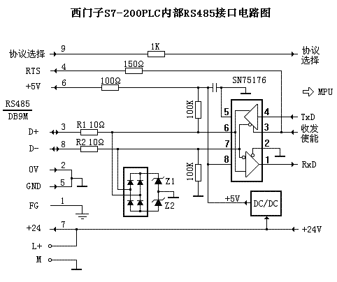 一、 S7-200PLC內部RS485接口電路圖:
