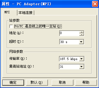 PG/PC端口也設(shè)置成了 PC Adapter MPI。 那你在屬性項目中設(shè)置為什么?比如傳輸率等。 |