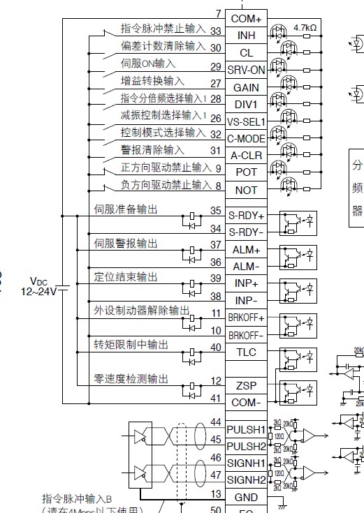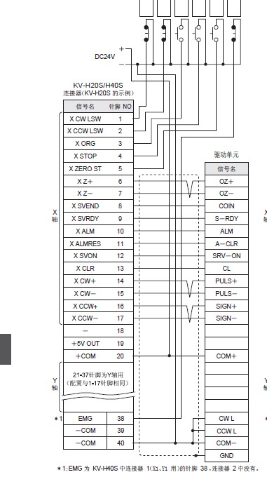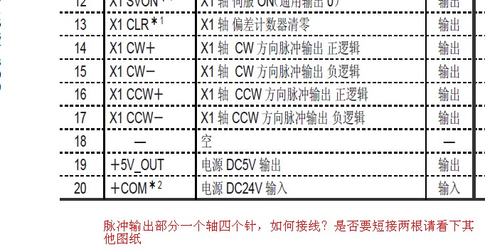 這個是基恩士H40S定位模塊的輸入輸出接線圖的一部分,看到與驅(qū)動器接線的圖紙中間沒有接電源,有可能是公共的,可是例如“伺服就緒”、“伺服結(jié)束”“Z相"之類的用的是5V電壓,為何又這樣接呢?針對說明書我有些懷疑,脈沖輸出部分要求也是5V電壓,KV-1000主機可以接24V的,也可接5V,問了客服似乎也不確定這個只是說能與伺服接線。 看到一般伺服只有12V和24V的集電極開路的接入方式,沒有5V的,直接接針對這個我有些懷疑。 接的是松下伺服,驅(qū)動器輸出分正負(fù),看到說明書只接了一根,應(yīng)該每一個另一根負(fù)接OV才對。 把驅(qū)動器的輸出接到定位模塊輸入似乎要電壓,看說明書似乎另外要加電源。每個軸四個針號,是否要把負(fù)邏輯部分短接0V。[ 此帖被gali1120107在2011-11-10 17:05重新編輯 ]