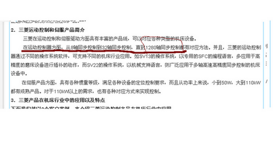 這是我在《中國工控網》看到的一篇文章,它說三菱運動控制器可以控制1280個軸。有圖為證