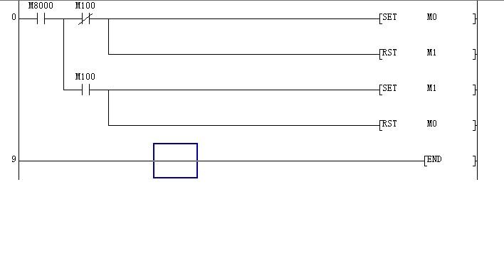 引用引用第4樓meipingboy于2012-04-09 11:32發(fā)表的 :搞不懂你要做什么?按上面程序來看,如果 M100 ON 那么 M1 是 ON M100 OFF 那么 M0 是 ON 那還不如干脆把M8000 去掉,不要用 SET 和 RST ,用如下圖,更簡單易懂!.......