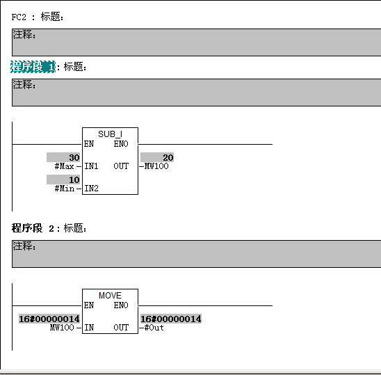 大家好 我現在被一個小問題困擾著 可能還是自己對FC功能的不夠理解吧 我在OB里分別調用FC1  FC2  FC里含局部變量(#Max  #Min  #Out)和變量MW100 我現在不理解為什么在調用FC1時 MW100的值不影響FC2里的MW100  見上傳的圖片 MW100 能顯示兩個值