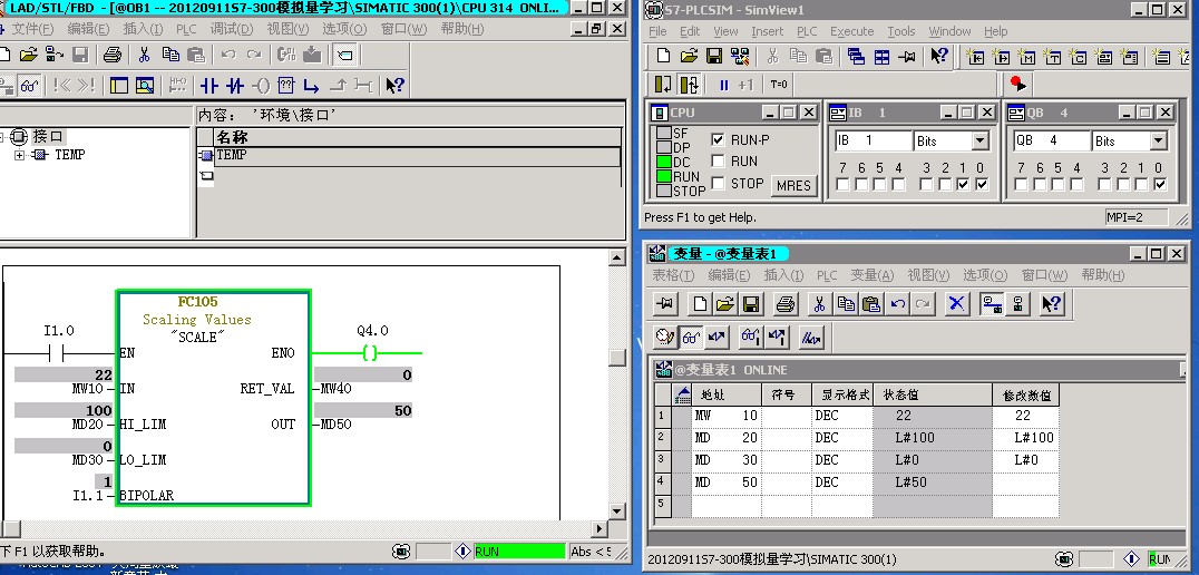 按教材,編了一個FC105的程序學習模擬量。可是輸出值咋感覺不對呢?