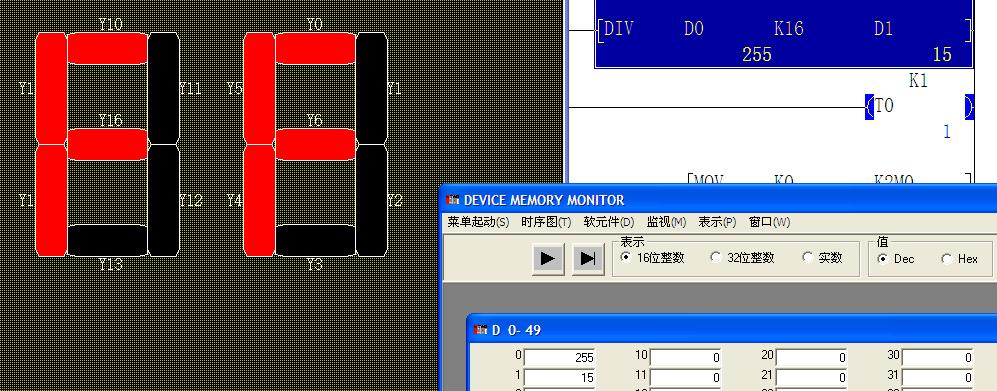 把除法指令中的K10換成K16,就可以顯示十六進(jìn)制00-FF(十進(jìn)制00-255)。