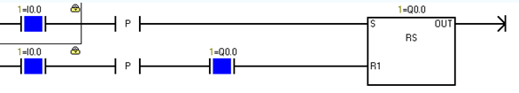 RS指令是先掃描SET端和RESET端的條件狀態之后再掃描輸出Q,所以可以成功實現單按鈕啟停。