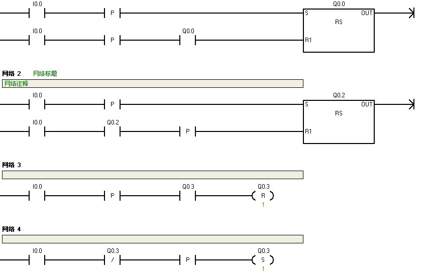 Q0.2在I0.0按下時從0到1又到0?若是改成S1R(置位優先)不也可以實現單按鈕起停控制。