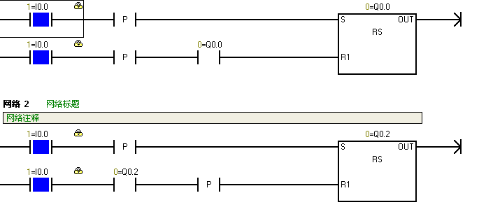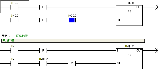 當第二個掃描周期時Q0.2觸發了P上升沿,所以立刻將其復位掉了。