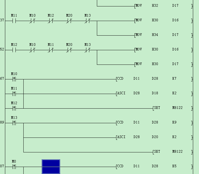 請(qǐng)教大家這個(gè)程序通訊正常,電機(jī)可以進(jìn)行正反停控制,HZ,A ,V能監(jiān)控,就是M13控制寫(xiě)頻率怎么也寫(xiě)不進(jìn)去,不知是什么問(wèn)題?