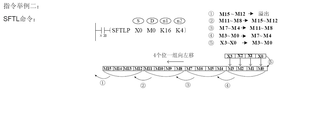 位左移循環指令,指令接通后把M5的狀態轉移給M18后的連續10個標志位位,沒接通一次轉移一位。