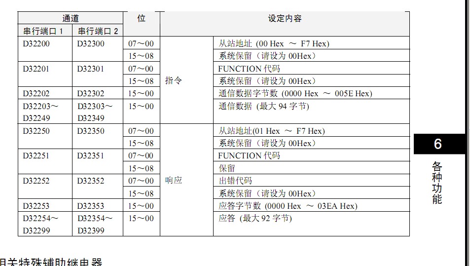 通訊地址設(shè)定1,通訊格式為8E1,波特率為9600 D32300~~~~D32304分別為: