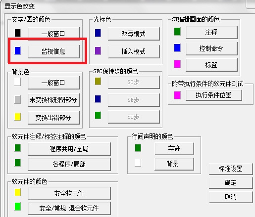 GX軟件打開(kāi)--工具--顯示色改變--監(jiān)視信息(設(shè)置為紅色)---確定