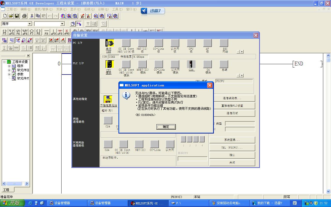 引用引用第4樓korlaliu于2014-01-09 13:21發表的 :版主按照附件里的說明還是無法通信。有幾個問題請教下,1. 編程線驅動在設備管理器里端口下有了,有的說通用串行總線下也要增加一項,我的沒有增加項,有影響嗎?2. 我用的xp 系統,有關系嗎,軟件都是論壇工控下載頁面的。3. COM 口的傳輸速率設置多少合適?從大到小都試了,還是不行。4. plc 端我只接了電源線。型號,fx3u-48mr 。.......