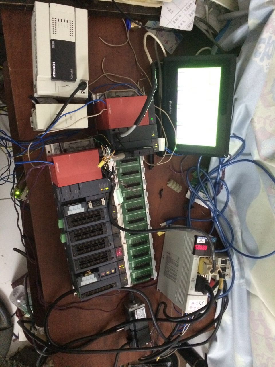 2套Q系列拆機PLC,成色9成新,可以上機,學習,4個QD75直線圓弧插補模塊,共12軸標簽還在還有串口通信,CLLK模塊,輸入、輸出模塊