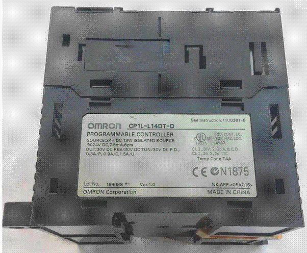 OMRON PLC型號怎么看,找了半天沒找到,原來在側面。為什么標簽貼在側面而不直接把型號印刷在表面呢,這樣便于觀看。