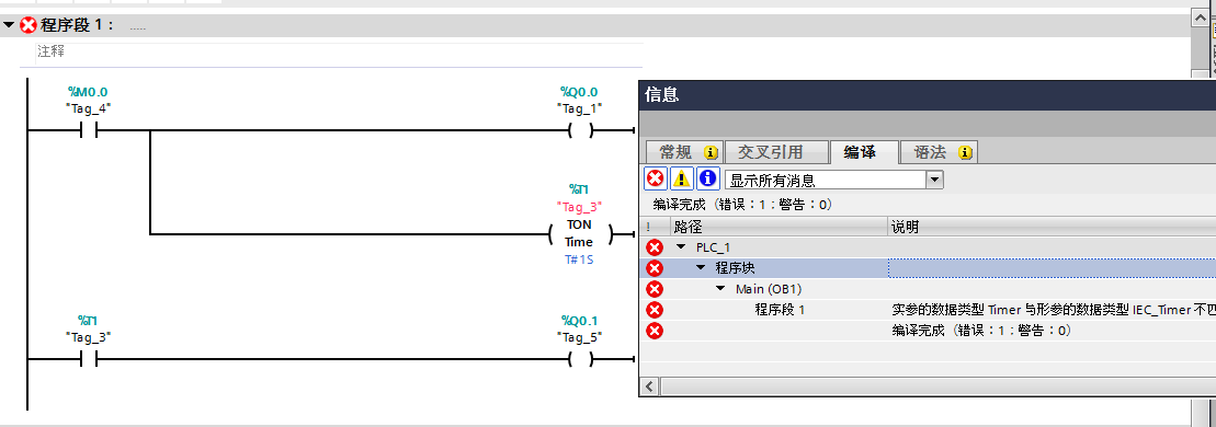 剛要學習西門子 PLC,請問簡單的問題,以下是什麼問題不能編譯,要如何修正。