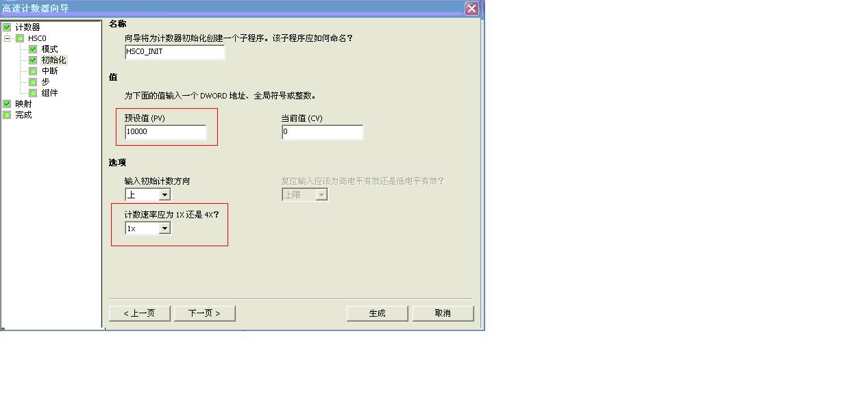 點擊“下一頁”,完成高速計數器向導,點擊“生成”,圖示: