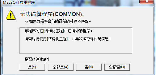 我新建一個(gè)結(jié)構(gòu)化工程,再讀取,只能讀一下參數(shù),程序的讀取項(xiàng)都不見了,原來程序是用的IO works英文版,我現(xiàn)在用的是Gx works2,這個(gè)會(huì)不會(huì)有影響?