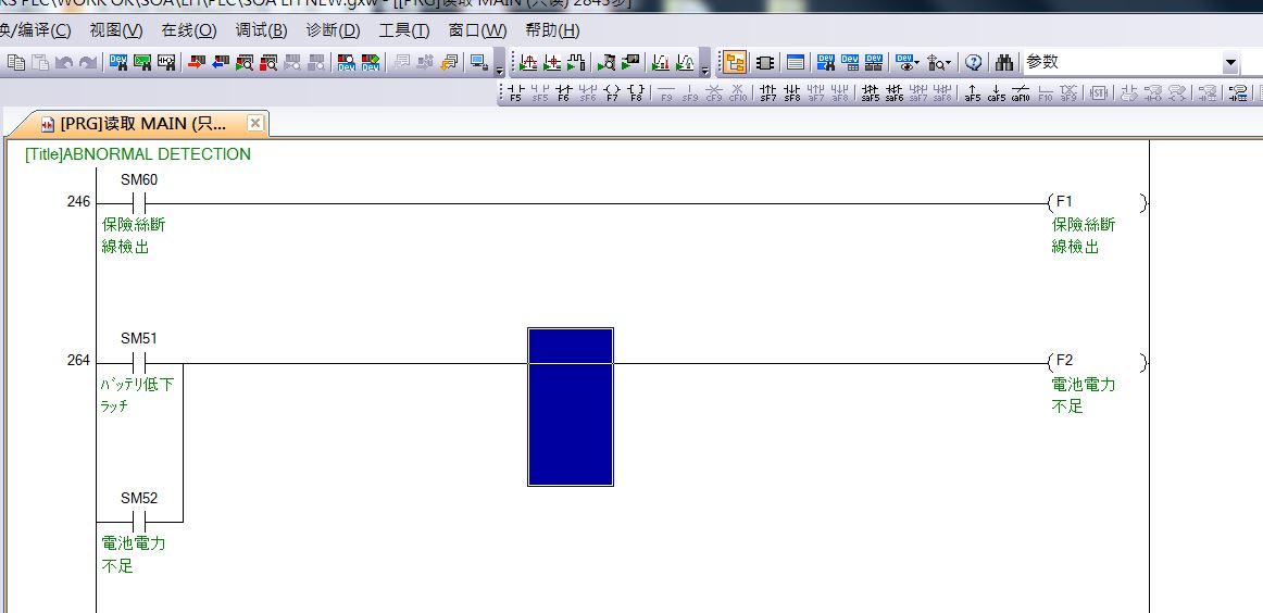 因為梯形圖注釋是日文的,最好用日文版的GX WORKS2,但不知哪里能下載。
