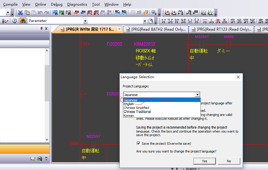 弟也是這樣使用GX2中文版讀取日文PLC程式的