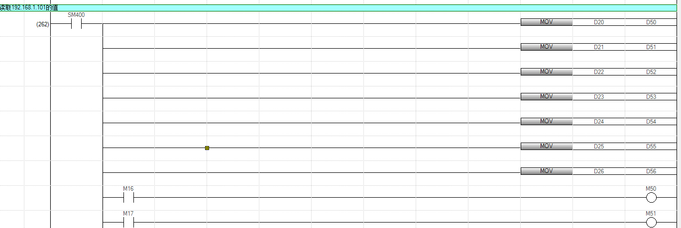 上部分是發送,下個SM400是讀取。這是通訊測試比較明了,發送出去又讀回來。