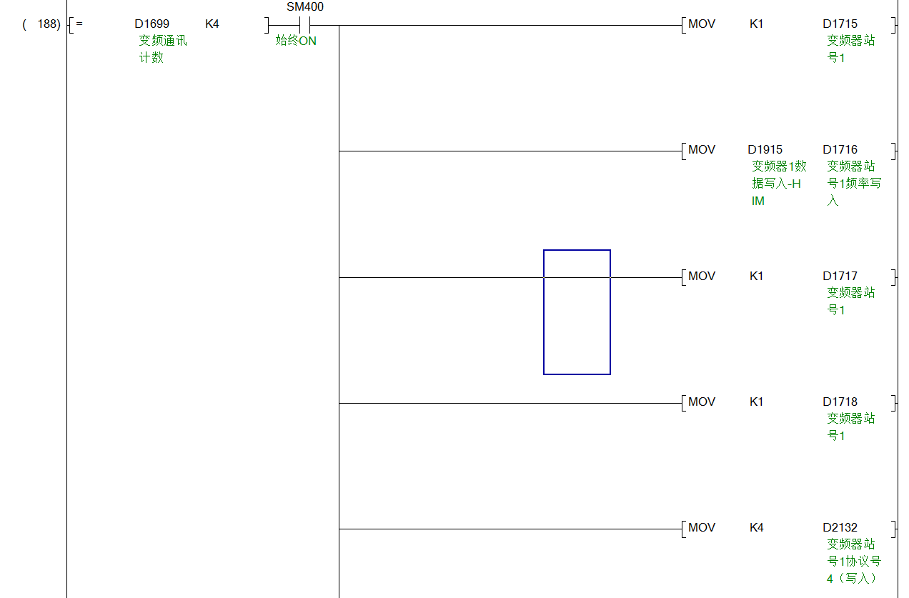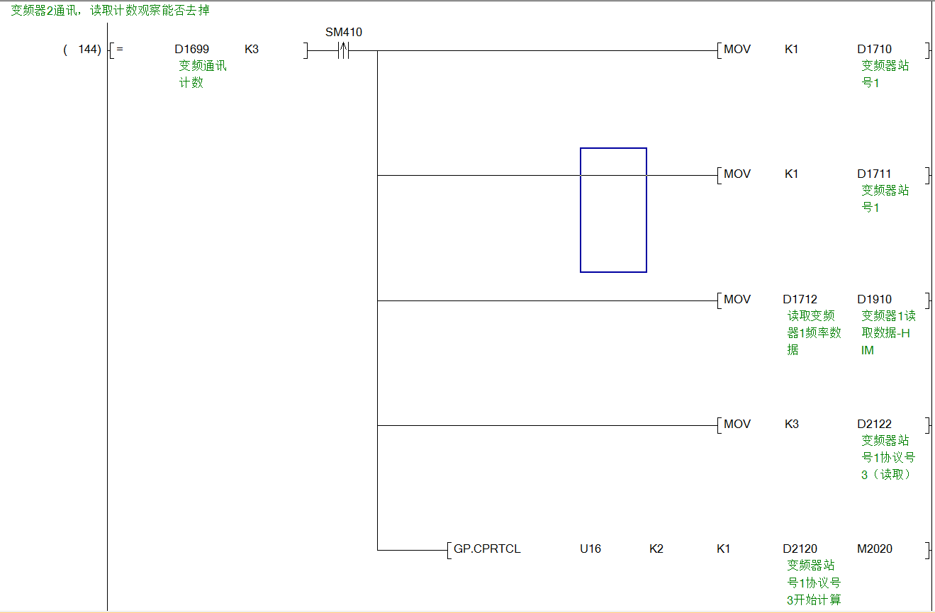 因為這個指令的執行機制是先執行第一條數據,收到響應后再繼續執行,關掉變頻器之后就卡死在其中的一步了,所以通信中斷。