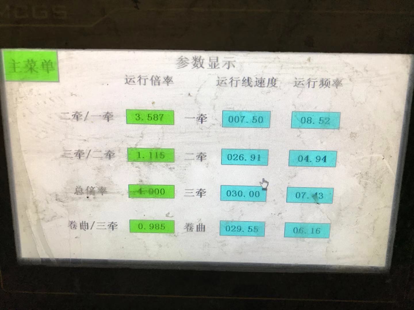 二牽減速比是7.1,牽伸輥直徑320mm,電機(jī)轉(zhuǎn)速是1440,