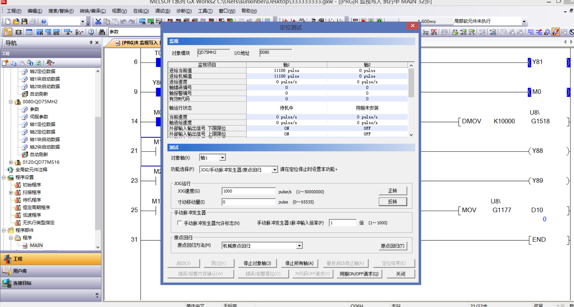 模塊起始地址是80所以Y80 Y81都啟動了,JOG運行時候模塊的AXI1也亮,電機就是不動
