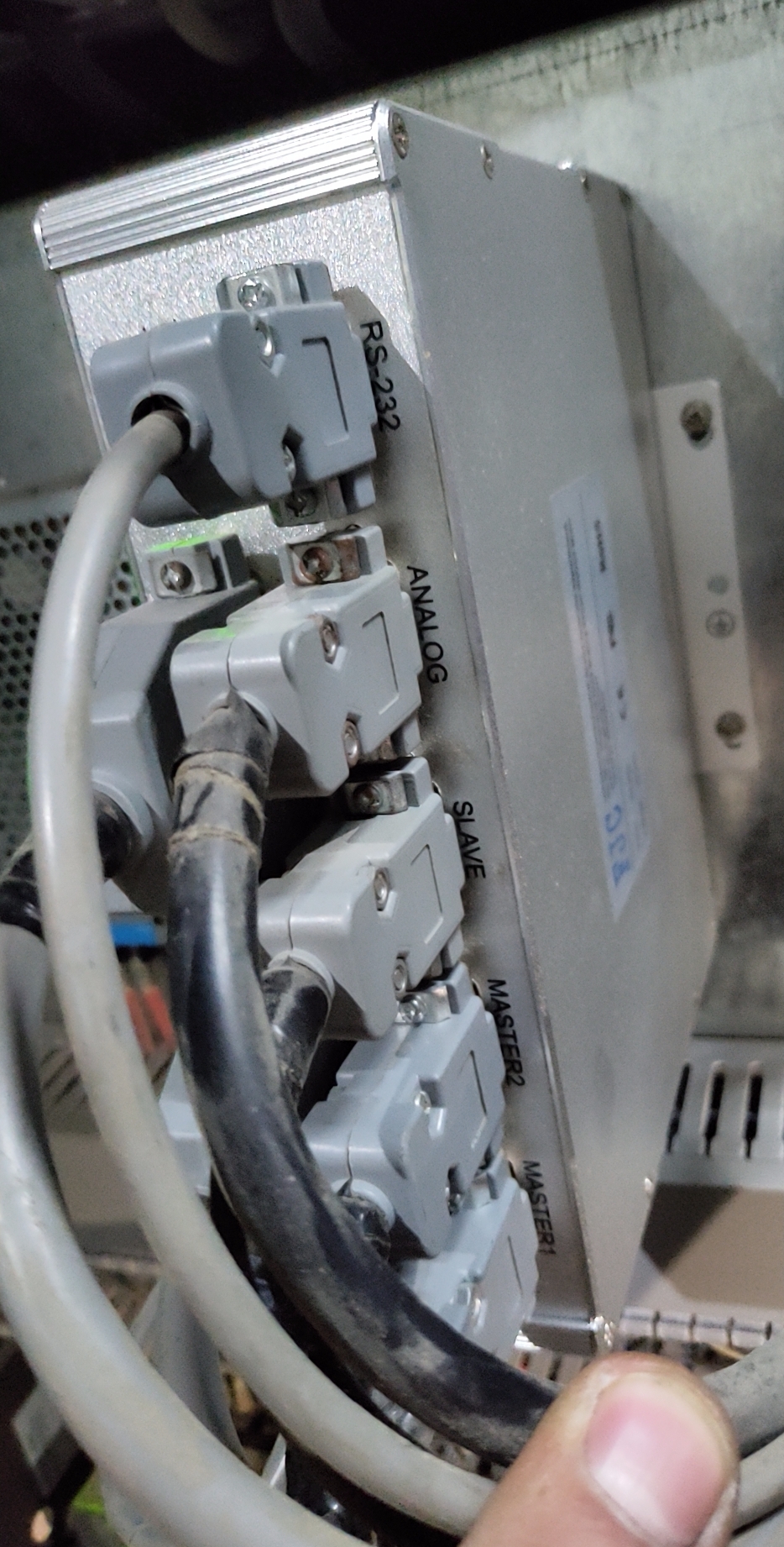 MASTR底下兩個(gè)接的是八線編碼器,RS232最上面接的是PLC通訊輸入端,ANAIOG模擬量的進(jìn)變頻器了