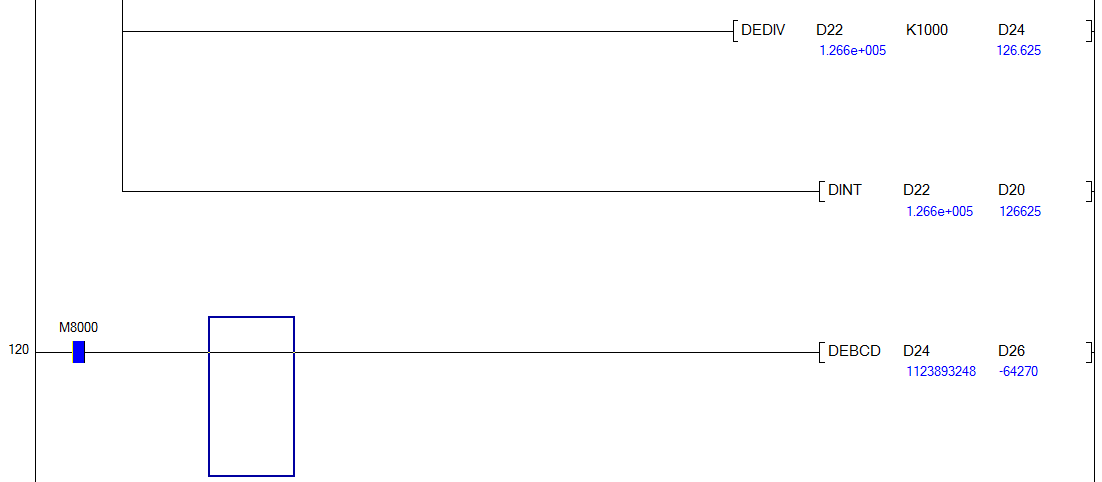 除1000轉成浮點數吧,很久沒用三菱了
