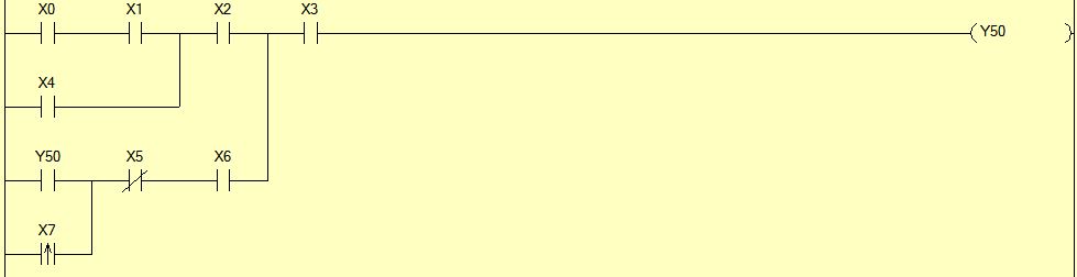 OUT(( (((X0 AND X1)OR X4)AND X2)OR((Y50 OR LDP(TRUE,X7))AND NOT X5 AND X6) )AND X3, Y50 );
