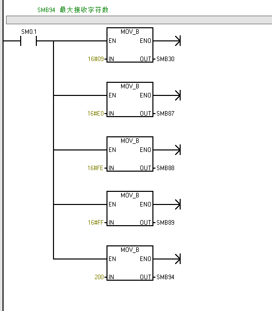 引用引用樓主powtiger于2020-07-04 12:31發(fā)表的 S7-200PLC自由口通訊求助。 :有一臺(tái)設(shè)備,通訊格式:波特率9600,一個(gè)起始位,一個(gè)停止位,8個(gè)數(shù)據(jù)位,無(wú)效驗(yàn)。PLC發(fā)送16進(jìn)制:D8 07 80 03 00 00 009C設(shè)備回答:D8 07 80 03 00 00 08 48 E1 EA 40 9A 99 B5 41 F3其中:D8 07 80 03 00 00 08為固定格式,有顏色的8位是兩組數(shù)據(jù)位。F3為校驗(yàn)和,不固定。請(qǐng)問(wèn)這個(gè)通訊格式用S7-200怎么編程?由于西門(mén)子規(guī)定一定要有起始符號(hào)和結(jié)束符號(hào),這個(gè)結(jié)束符號(hào)是校驗(yàn)和,不是固定值,我一直讀不到數(shù)據(jù),請(qǐng)大家?guī)臀覍?xiě)個(gè)程序好嗎,可有償服務(wù),謝謝
