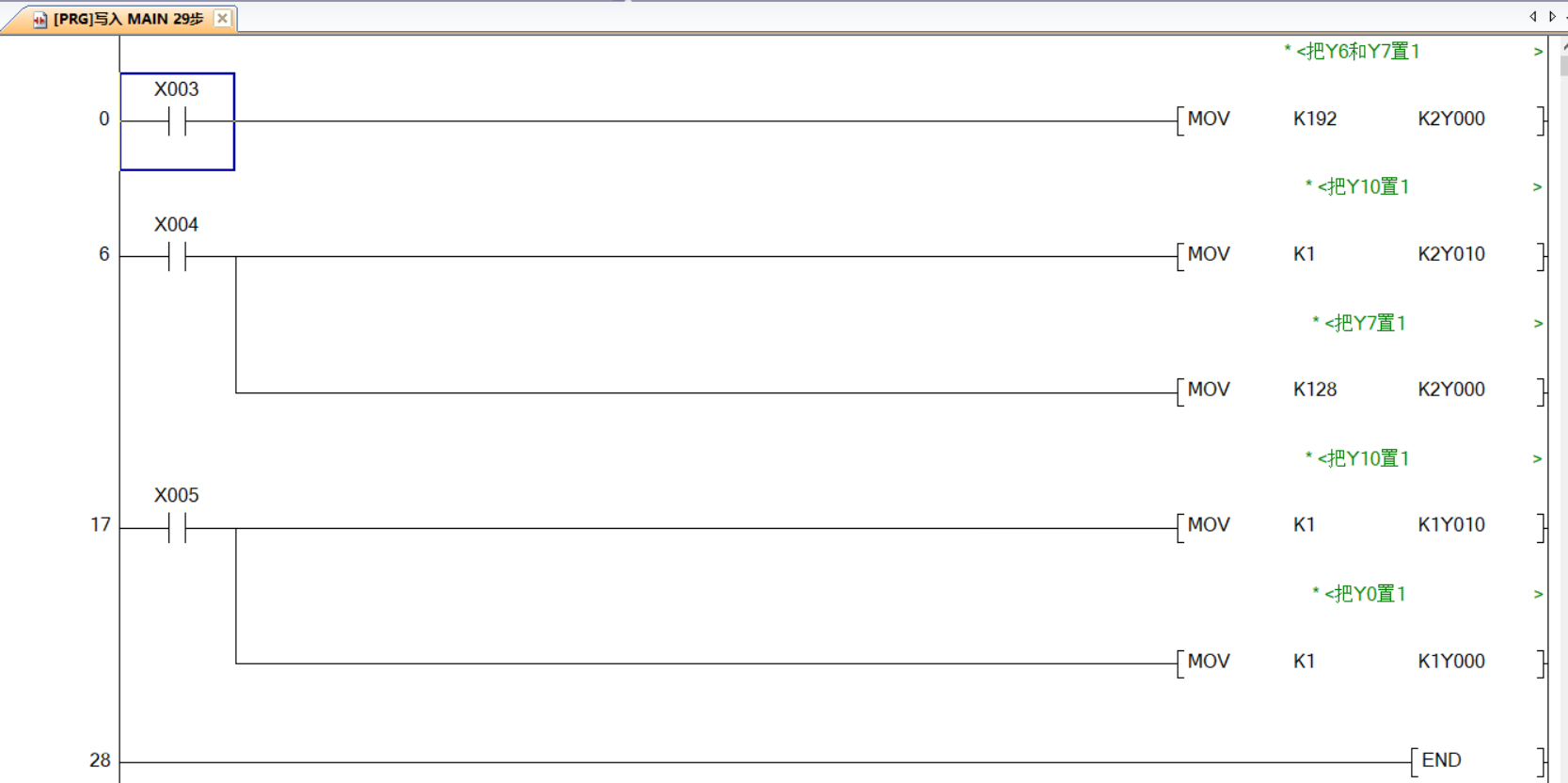 剛學三菱,我用三個按鈕分別控制了X3控制Y6和Y7導通,X4控制Y7和Y10導通,X5控制Y0和Y10導通,但是現在怎么一個有一個在置位中,不是按照按下那個按鈕那兩個導通,求高手看看這是什么原因,不勝感激