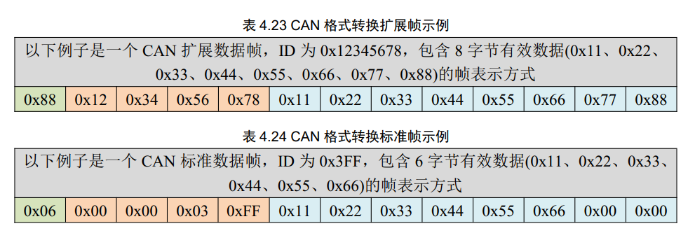 模塊采用固定的個是轉換,每一幀CAN報文都轉換出13個字節長度的數據: