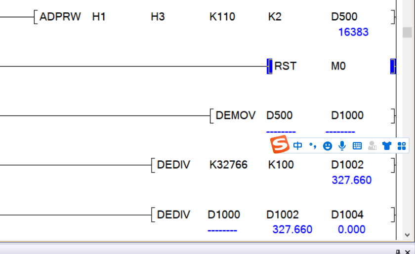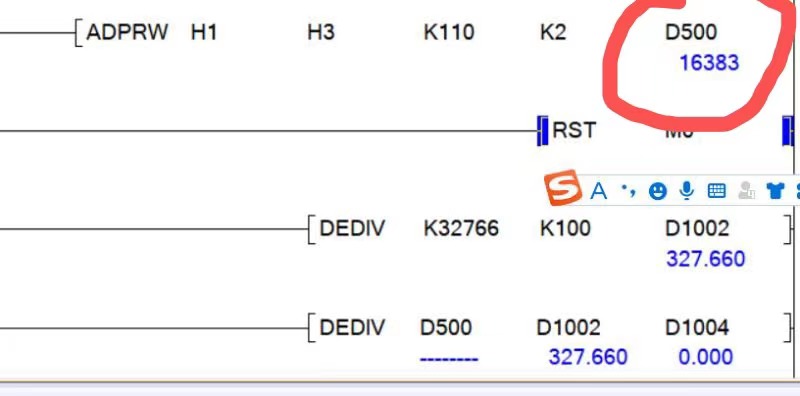 用一個(gè)轉(zhuǎn)換指令,D500是DW數(shù)據(jù)類型,DEDIV是FLOT數(shù)據(jù)類型