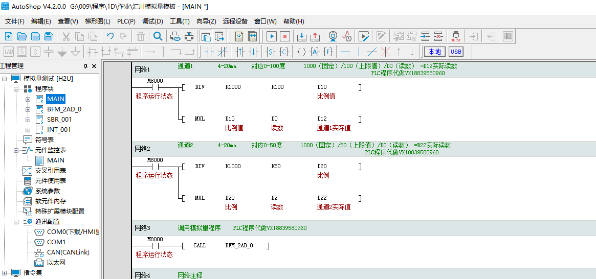 應小伙伴要求,匯川資料較少,寫個模擬量模板,供新手參考學習