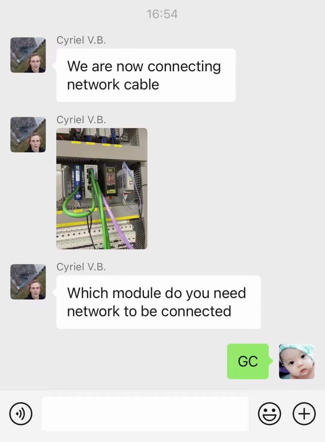 比利時人終于準備接入網絡,工程師在國內將通過GRM530下載調試ABPLC和觸摸屏程序了。